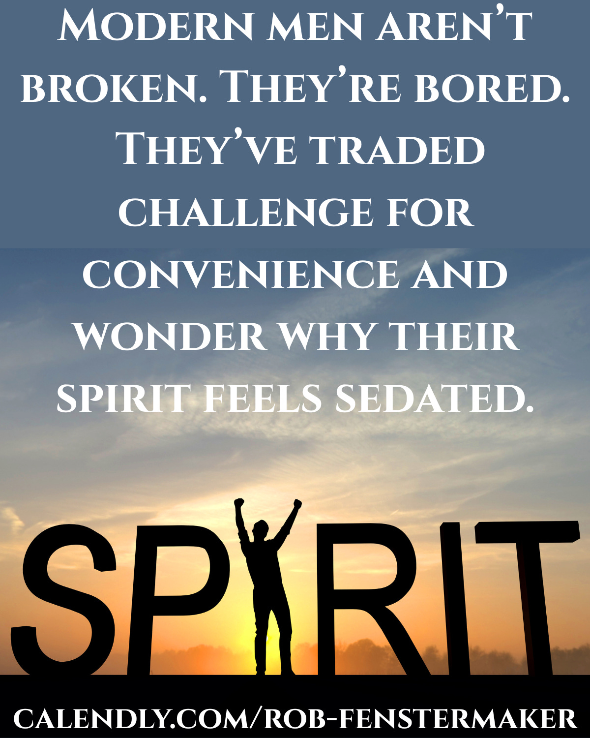 Another brilliant post Rob. I love how you address this crisis of purpose we have that is only going to get worse. There are plenty of worthy challenges I see that our brother's are available and capable of solving with the right motivation. Thanks for the work you do!