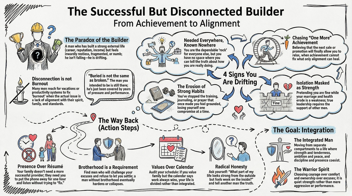 Many successful men feel empty because they have spent years building a life around achievement, responsibility, and performance while neglecting connection, purpose, health, and relationships. Success without alignment often creates a quiet sense of disconnection.